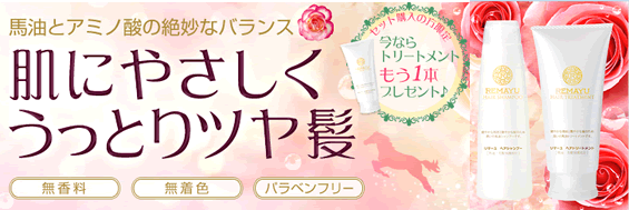 馬油配合のリマーユシャンプーは、頭皮と髪に優しいのが特徴です。